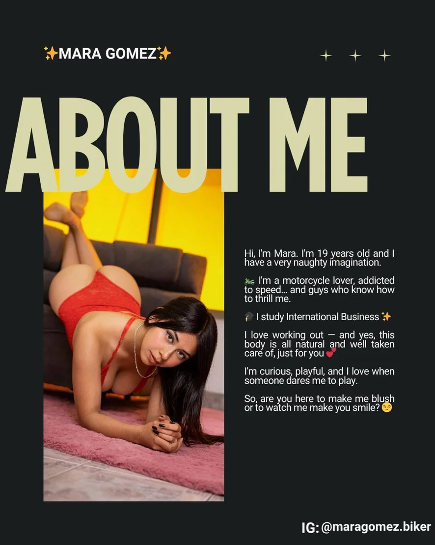 Hola, soy Mara, una mujer auténtica, sensual y con mucha actitud. Me encanta jugar con la imaginación, conectar de verdad y crear momentos que no se olvidan.